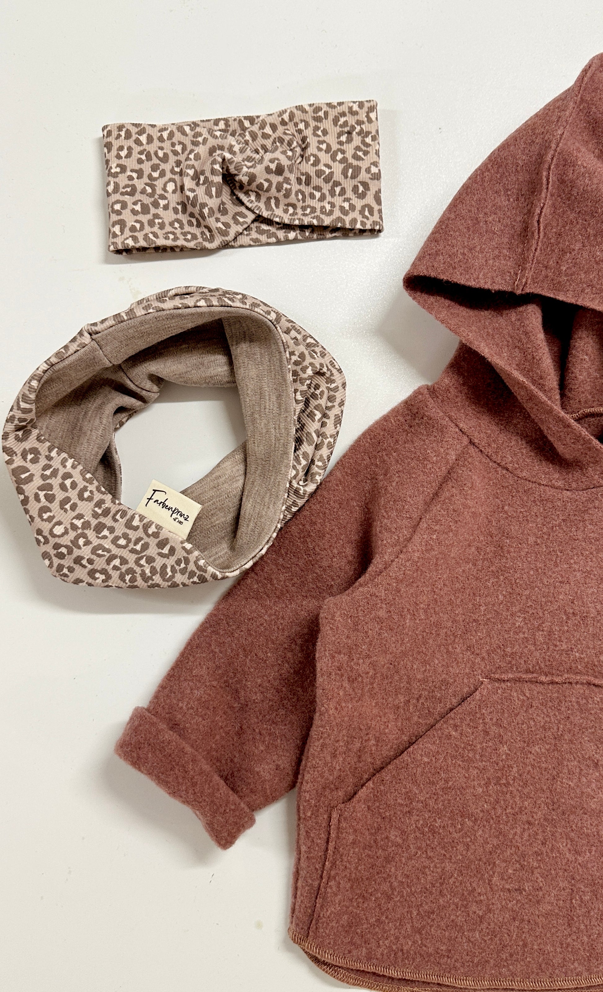 - Stirnband: Rib-Jersey (95% Baumwolle, 5% Elastan)