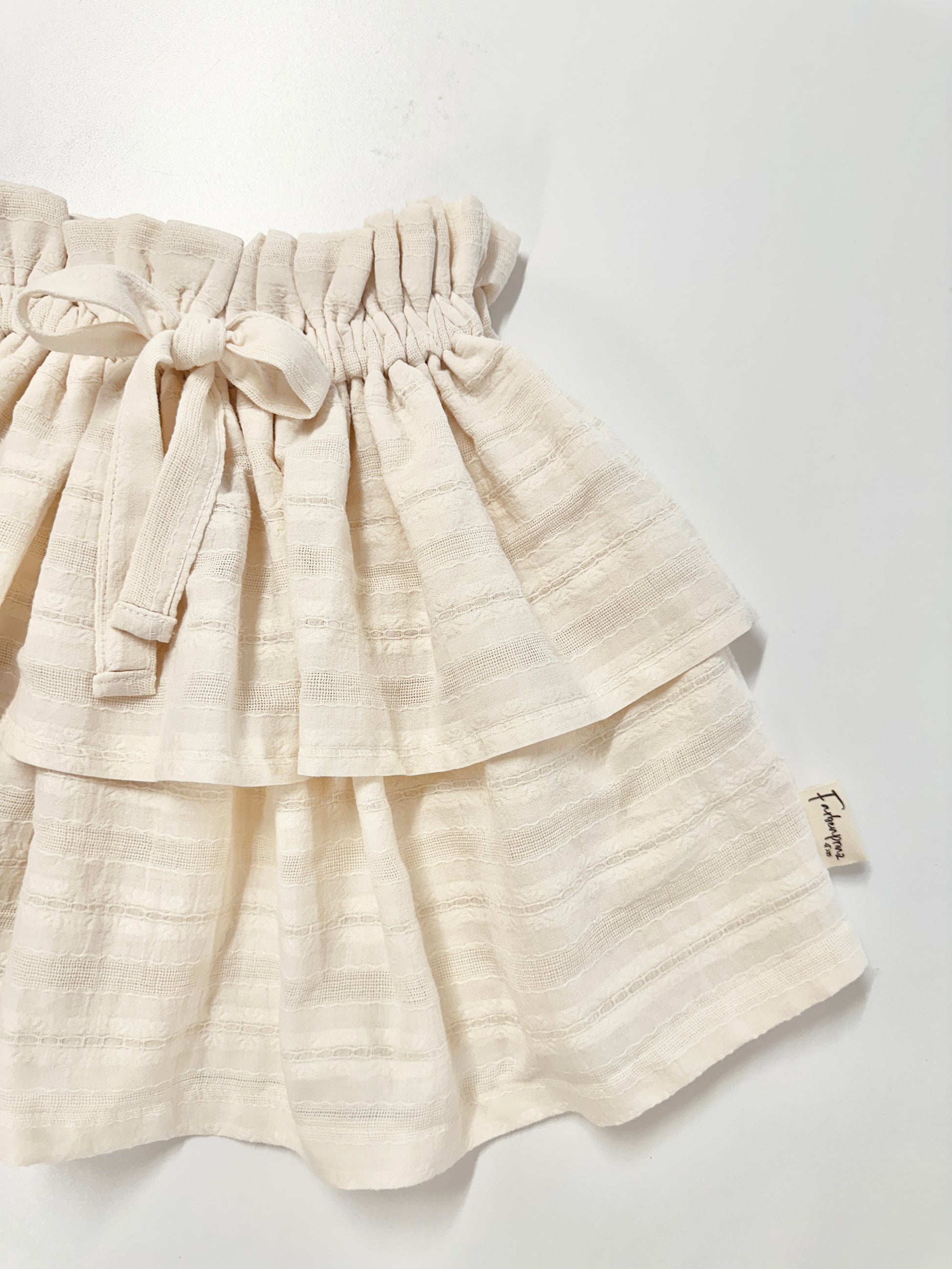 Paperbag Rock, helles beige, zweilagig, 6-10 Jahren, 37cm lang